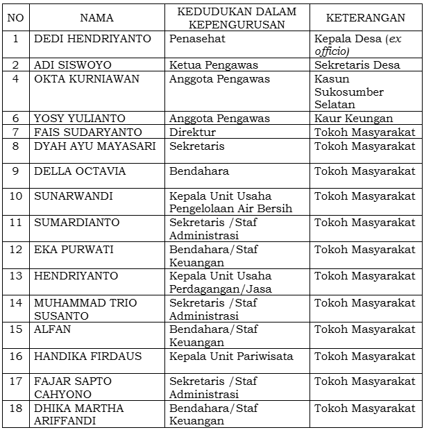 PENGURUS BADAN USAHA MILIK DESA RAUNG ASRI